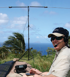 Много раз читал и слышал про чудесную антенну buddipole, которая встречалась мне в репорте не одной DX педиции на диапазонах от 40 до УКВ. И, кстати, уже на 50 мгц она становилась двухэлементной Яги. :-) Естественно, на всех диапазонах её можно использовать как в GP варианте, различных вариантах диполей, а также Yagi. Чесно говоря, пока не поковырялся в журналах и интернете, относился к этому очень скептически. Но поковырятся заставила реальная картинка: точно так же, как резко стали активно использоваться дешевые и очень эффективные гексабимы, в каждом втором комплекте аппаратуры DX педиций я видел баддиполи. Ближе оказалась подборка из QST за несколько лет. Оттуда в основном и сведения. :-) Первое, что делает её действительно эффективной - она резонансная. Конечно это же её свойство является и недостатком: при переходе с диапазона на диапазон антенну приходится наполовину разбирать, собирать снова и потом снова настраивать. Нет переключателей. Она однодиапазонная. Но! Она действительно резонансная. Она действительно чудесным образом работает на высоте 3 метров от земли или палубы. (Хотя есть деталька, позволяющая крепить всё это на мачте любой высоты.) Она очень легко вращается. Изменяя геометрию плечей возможно формировать диаграмму направленности.  Она работает даже в велосипедном варианте. Скажете вы - неэффективно. По сравнению с тремя элементами Яги - да. Да, но зато как удобно!  И, главное, комбинация катушек индуктивности, клампов (перемычек) и телескопические окончания, позволяющие изменять длину в широких (относительно) пределах, позволяет иметь КСВ=1 при резонансе на всех диапазонах от 40 до 2 метров! Внешне выглядит скромно,  но очччень эффективно!