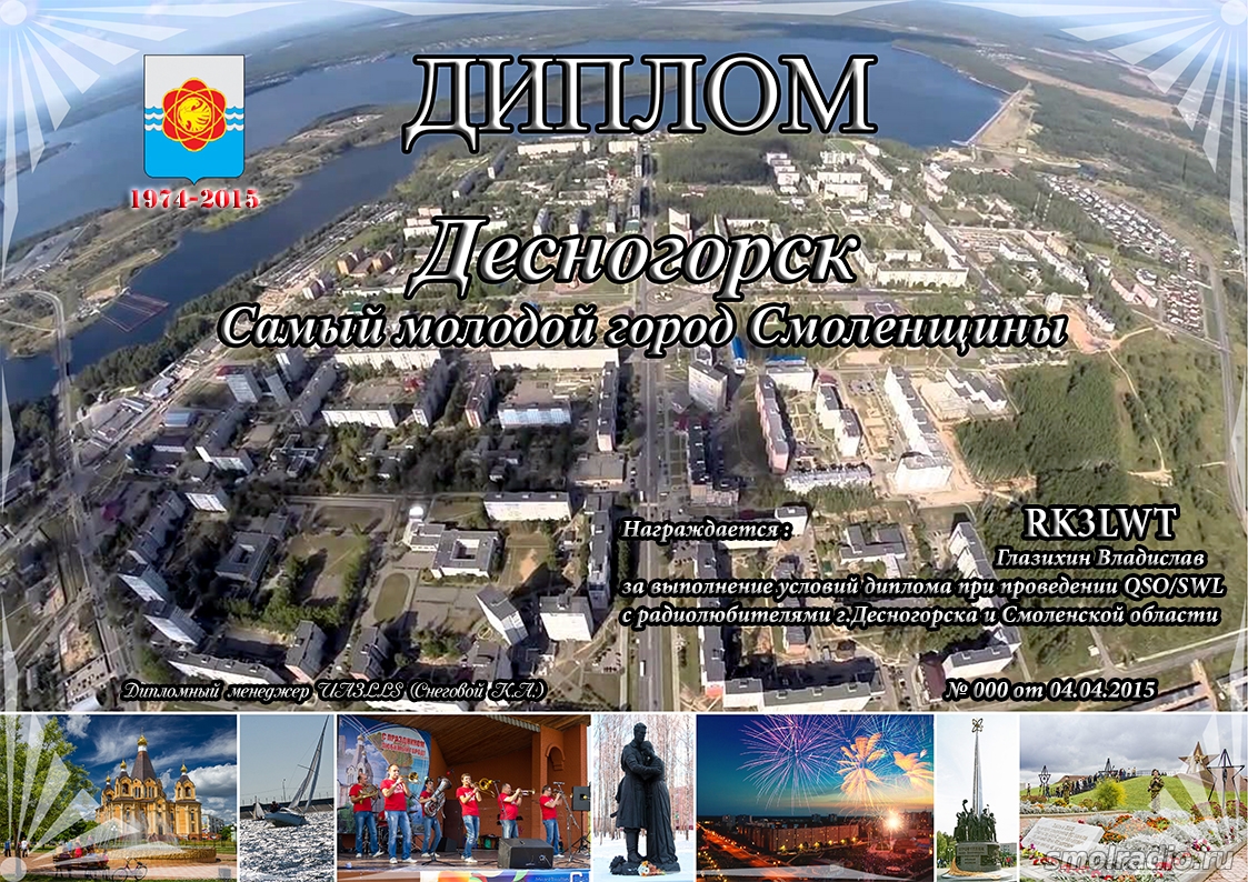 Диплом "Десногорск. Самый молодой город Смоленщины", учрежден радиолюбителями г.Десногорска.