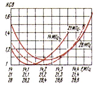 Антенна излучает или принимает электромагнитные колебания с наибольшей эффективностью только тогда, когда частота возбуждающего колебания совпадает с резонансной частотой антенны. Из этого следует, что ее активный элемент, вибратор или рамка имеют такой физический размер, при котором наблюдается резонанс на нужной частоте. Изменением линейных размеров активного элемента - излучателя, антенна настраивается в резонанс. Как правило (исходя из наилучшего соотношения эффективность/трудоёмкость и согласования с линией передачи), длина антенны равна половине или четверти длины волны на центральной рабочей частоте. Однако из-за емкостных и концевых эффектов электрическая длина антенны больше, чем ее физическая длина. На резонансную частоту антенны влияют: близость расположения антенны над землей или какого-нибудь проводящего объекта. Если это антенна многоэлементная, то резонансная частота активного элемента может еще изменяться в ту или иную сторону в зависимости от расстояния активного элемента по отношению к рефлектору или директору. В справочниках по антеннам приводятся графики или формулы для нахождения коэффициента укорочения вибратора в свободном пространстве в зависимости от отношения длины волны к диаметру вибратора. В действительности коэффициент укорочения определить точнее довольно сложно, т.к. существенное влияние оказывает высота подвеса антенны, окружающие предметы, проводимость почвы и т.п. В связи с этим, при изготовлении антенны, используют дополнительные элементы подстройки, позволяющие в небольших пределах изменять линейные размеры элементов. Одним словом «доводить» антенну до рабочего состояния лучше на месте её постоянного расположения. Обычно, если антенна проволочная типа диполя или Инвертед V, укорачивают (или удлиняют) провод, подключенный к центральной жиле фидера. Так меньшими изменениями можно добиться большего эффекта. Таким образом настраивают антенну на рабочую частоту. Кроме этого, изменяя наклон лучей в Инвертед V, подстраивают по минимуму КСВ. Но и этого может оказаться недостаточно. Об этом ниже.
