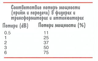 • В линии с КСВ>1 наличие отраженной мощности не приводит к потерям передаваемой мощности, хотя некоторые потери наблюдаются из-за конечного затухания в линии в фидерной линии без потерь нет потерь мощности из-за отражения независимо от величины КСВ. На всех KB диапазонах с кабелем, имеющим низкие потери, потери в рассогласованной линии обычно незначительны, однако на УКВ могут быть существенными, а на СВЧ—даже чрезвычайно большими. Затухание в кабеле зависит, прежде всего, от характеристик самого кабеля и его длины. При работе на KB кабель должен быть очень длинным или очень плохим, чтобы потери в кабеле стали весьма существенными.