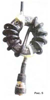 На практике это или специальный трансформатор именуемый балун (баланс-унбаланс) или просто некоторое количество ферритовых колец, надетых на кабель вблизи точки подключения антенны. Обратите внимание, что когда мы говорим "балун-трансформатор", то имеем в виду что в этом случает реально транфсормируется импеданс, а если это просто балун, то скорее это дроссель включенный в цепь оплетки кабеля. Обычно даже для диапазона 80 метров хватает десятка колец (типоразмер по кабелю, проницаемость что-нибудь от 1000НН и меньше). На диапазонах выше и того меньше. Если кабель тонкий, и есть одно или несколько колец большого диаметра, можно поступить наоборот: намотать на колце(цах) несколько витков кабелем. Важно: из всех витков что помещаются, половину надо намотать в другую сторону. У меня на диполе 80-ти метрового диапазона 10 витков кабеля на кольце 1000НН (рис.5), а на трехдиапазонном гексабиме(спайдере) 20 колец надетых на кабель. Их общее сопротивление (как индуктивность) на рабочей частоте должно быть более 1 килоОма. Это исключит протекание тока по оплетке кабеля, тем самым достигается симметричное возбуждение в точке подключения.